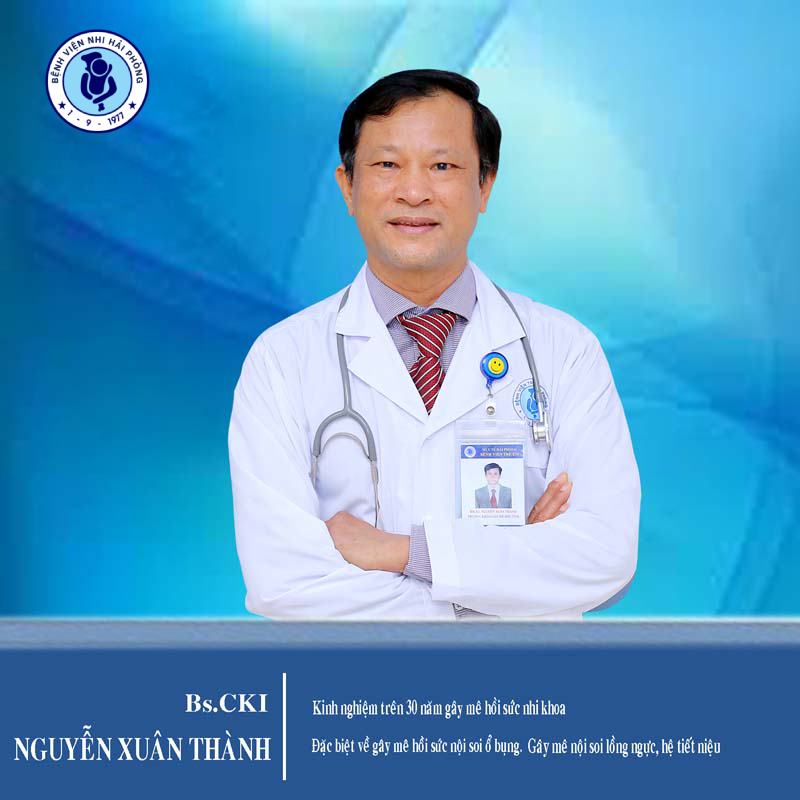 BSCK I Nguyễn Xuân Thành co kinh nghiệm trên 30 năm Gây mê hồi sức trẻ em, đặc biệt về gây mê hồi sức nội soi ổ bụng, gây mê nội soi lồng ngực, hệ tiết niệu. Bác sĩ Nguyễn Xuân Thành được đào tạo BS.CKI tại Đại học Y khoa Hà Nội.