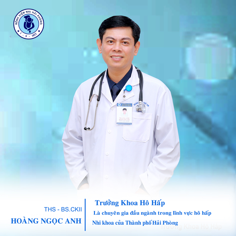 BSCKII.ThS.Hoàng Ngọc Anh là Bác sĩ chính hạng II, chuyên gia hàng đầu trong lĩnh vực Nhi hô hấp của thành phố, đã từng được Cơ quan giao nhiều nhiệm vụ quan trọng như: Trưởng khoa Khám bệnh, Trưởng phòng Kế hoạch tổng hợp kiêm Phụ trách khoa Hô hấp...và hiện đang giữ chức vụ Trưởng khoa Hô hấp Bệnh viện Nhi Hải Phòng.