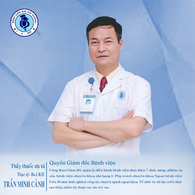 Hiện tại, Bác sĩ Trần Minh Cảnh là Phó Giám đốc phụ trách khối Ngoại của bệnh viện Nhi Hải Phòng, là một trong những chuyên gia đầu ngành về ngoại nhi tại thành phố Hải Phòng. Trực tiếp tổ chức và chỉ đạo thực hiện các kỹ thuật thường quy an toàn; Triển khai nhiều kỹ thuật cao, kỹ thuật hiện đại như:
