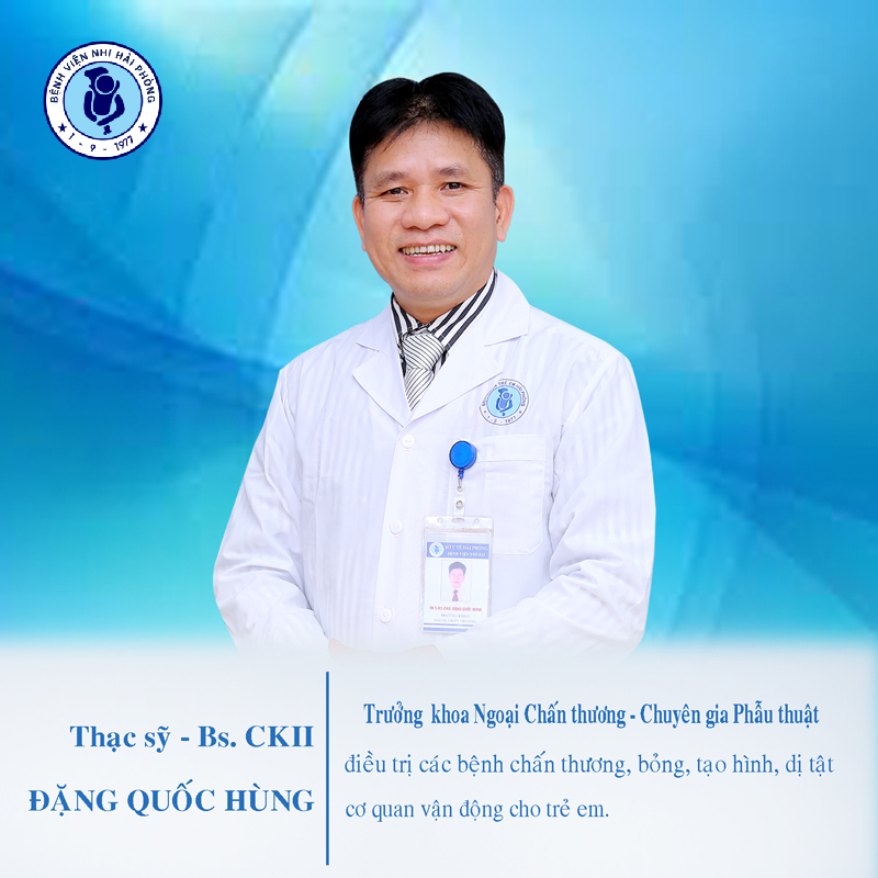 Thạc sĩ – Bác sĩ CKII. Đặng Quốc Hùng - Trưởng khoa Ngoại Chấn thương - Chuyên gia Phẫu thuật, điều trị các bệnh chấn thương, bỏng, tạo hình, dị tật cơ quan vận động cho trẻ em.