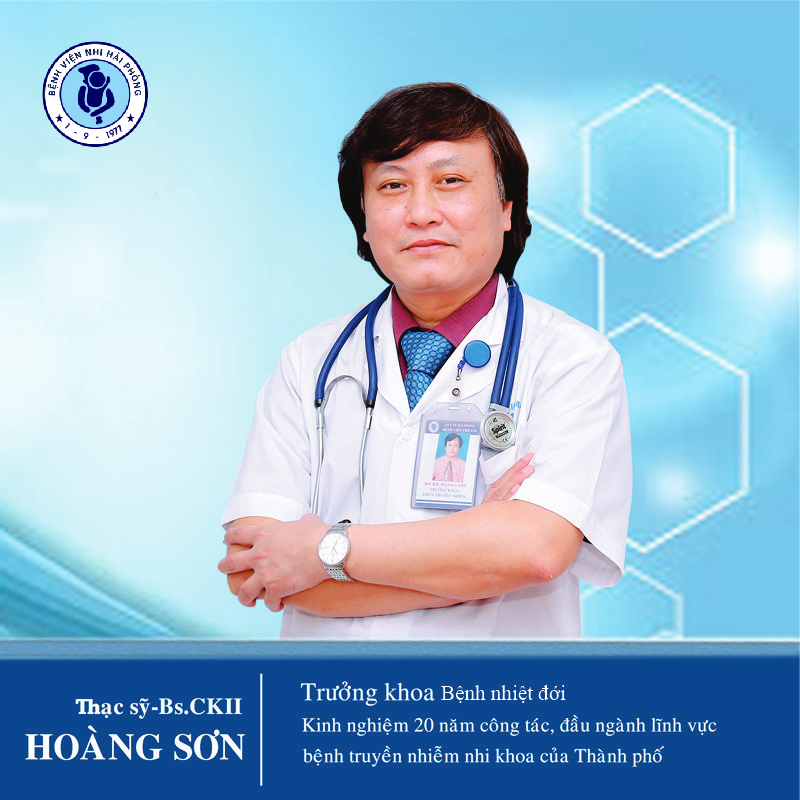Thạc sĩ - Bác sĩ CKII. Hoàng Sơn – Trưởng khoa Truyền nhiễm. Kinh nghiệm trên 20 năm công tác, đầu ngành lĩnh vực bệnh truyền nhiễm nhi khoa của Thành phố Hải Phòng.