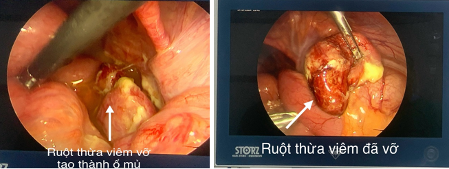 Hình ảnh ruột thừa vỡ quan sát trong mổ nội soi