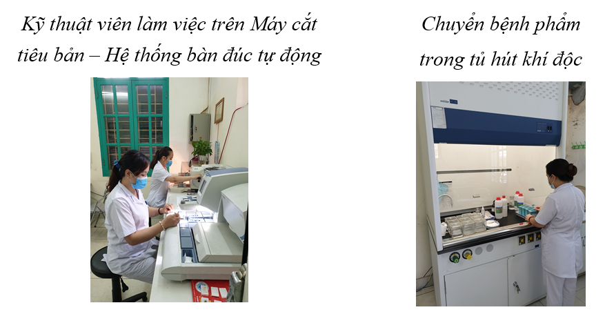 tiêu bản sử dụng dao cắt 1 lần, tủ hút khí độc đạt tiêu chuẩn…giúp cho công việc