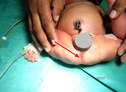 Hình 2. Trẻ không có hậu môn phát hiện ngay sau sinh.