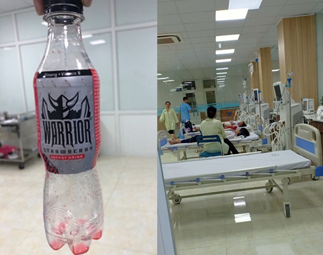 Hình ảnh: 3 bệnh nhân ngộ độc nước Warrior vào khoa HSCC với các triệu chứng đau đầu, chóng mặt, khó thở, buồn nôn, nôn, đau bụng và tiêu chảy. Đã được xử trí rửa dạ dày, bù nước và điện giải, điều trị các triệu chứng. Sau 2 ngày bệnh nhân ổn định hơn.