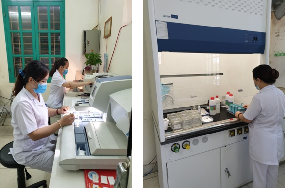 bệnh phẩm trong tủ hút khí độc (ảnh phải)