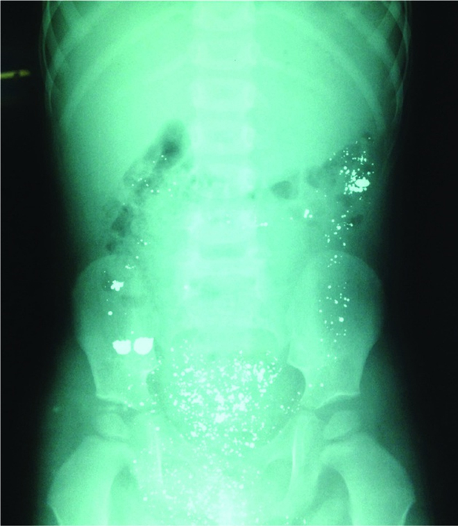 Hình ảnh X-quang bụng cháu bé ngày đầu tiên khi uống nhầm thủy ngân