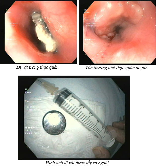sĩ phát hiện 01 dị vật dạng tròn nằm ở đoạn 1/3 giữa thực quản của cháu bé và