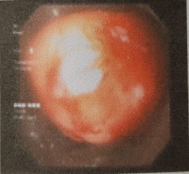 2: Khối u manh tràng quan sát thấy trên màn hình nội soi đại tràng, kích thước