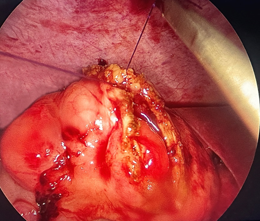 các bác sĩ đã tiến hành khâu lại chỗ mở manh tràng bằng nội soi, (Hình 4). Sau