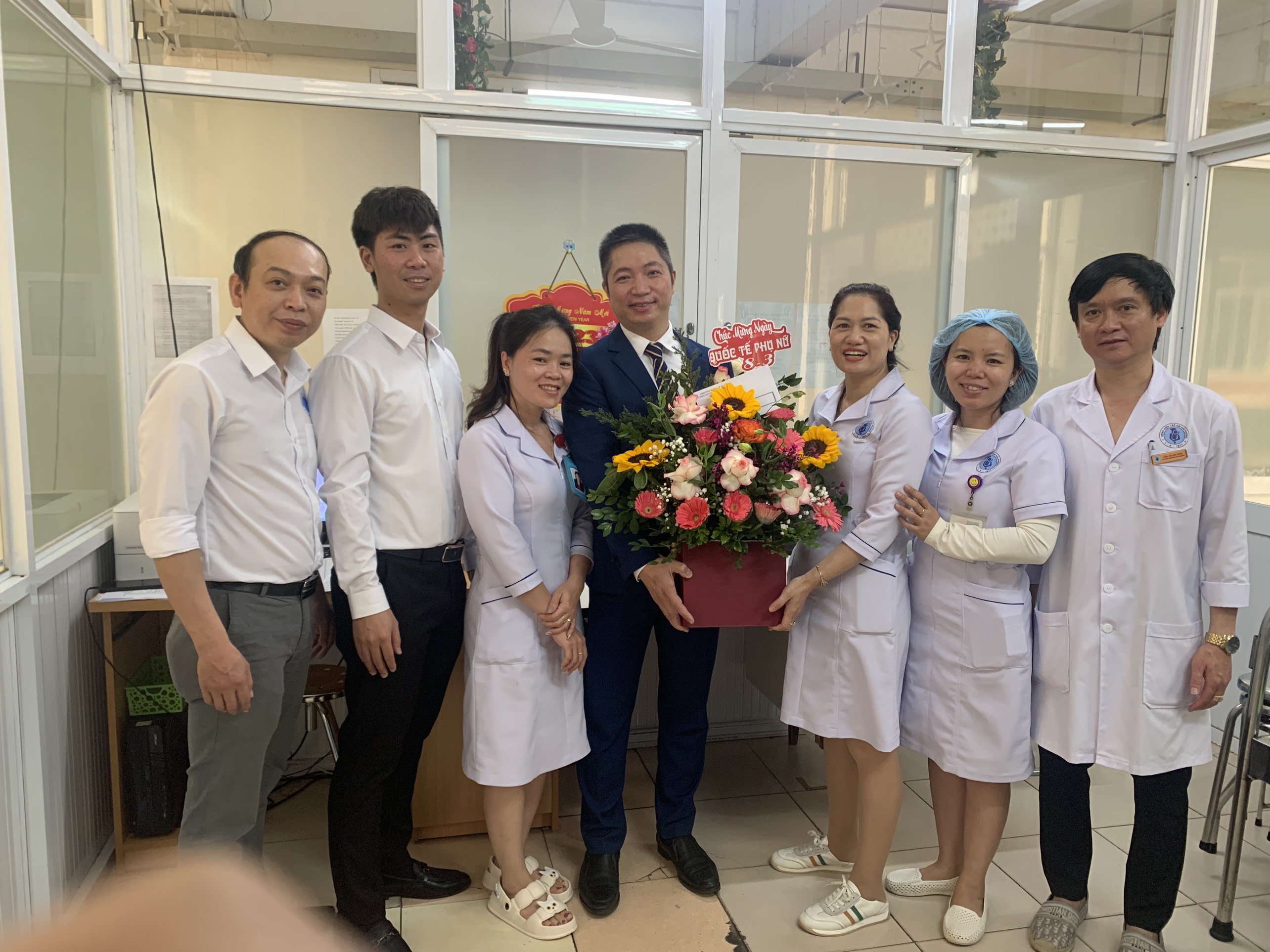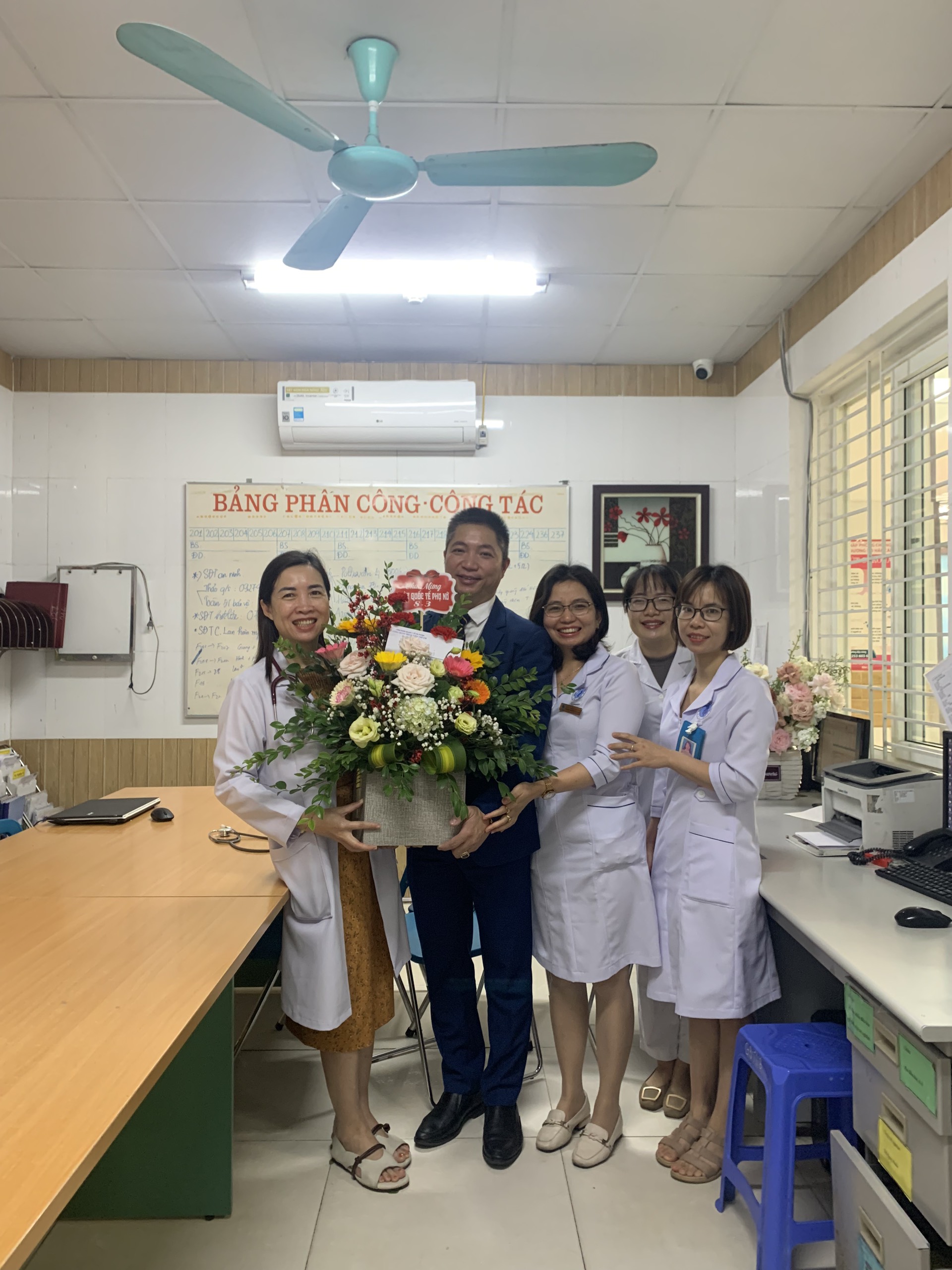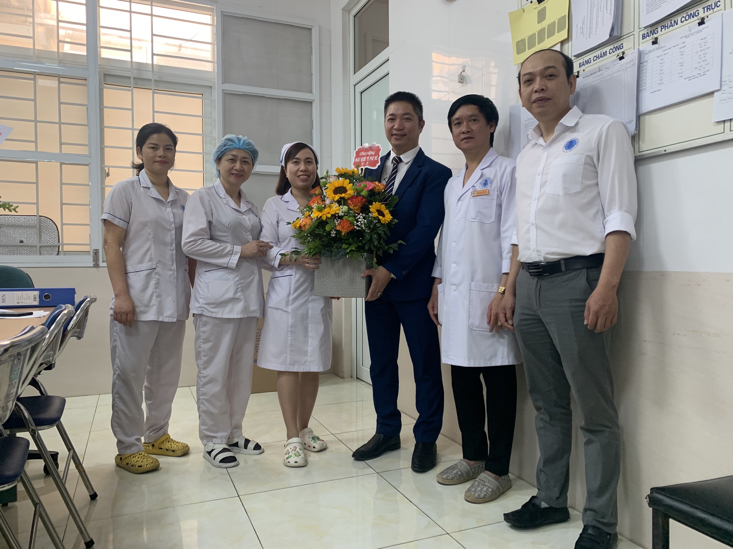 lẵng hoa tươi thắm đến từng khoa, phòng để chúc mừng các chị em, nhằm đảm bảo