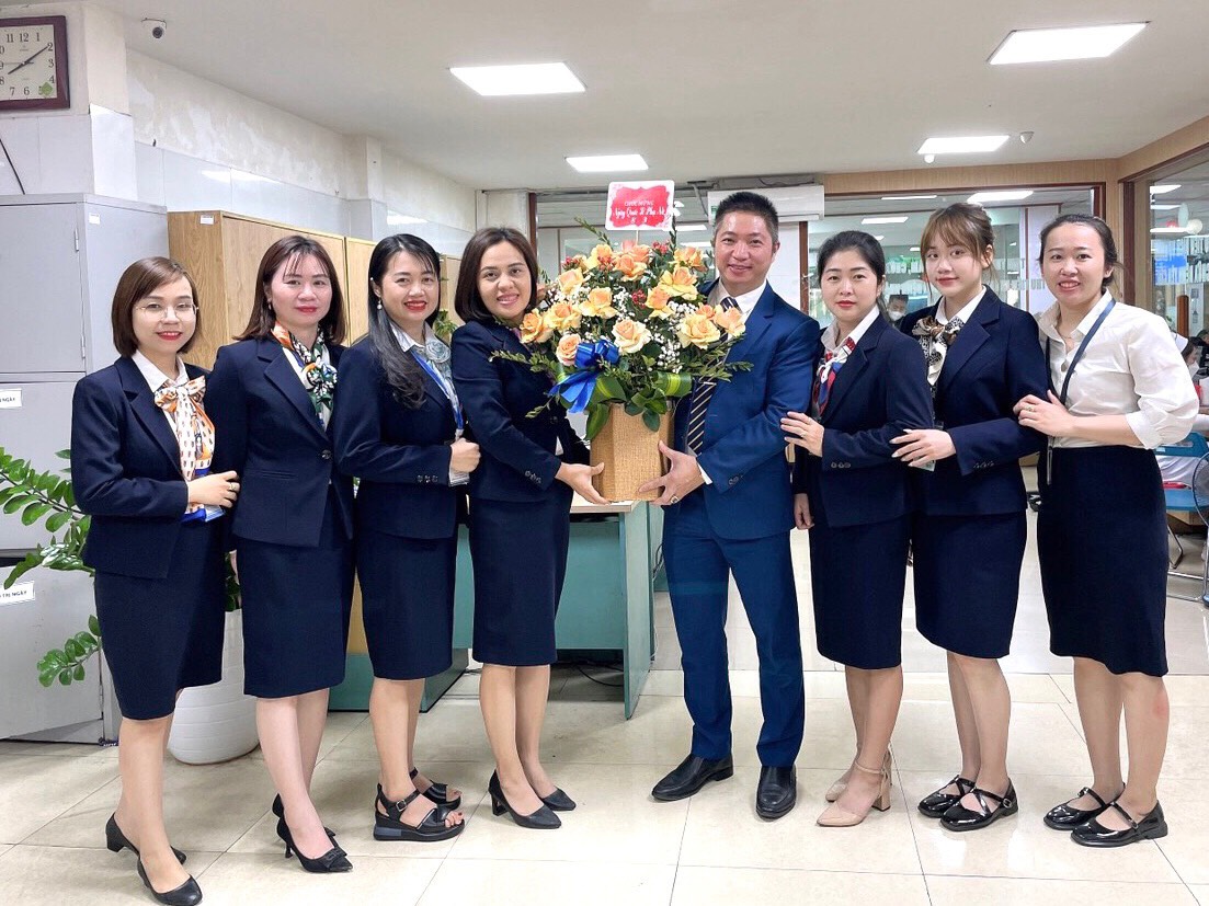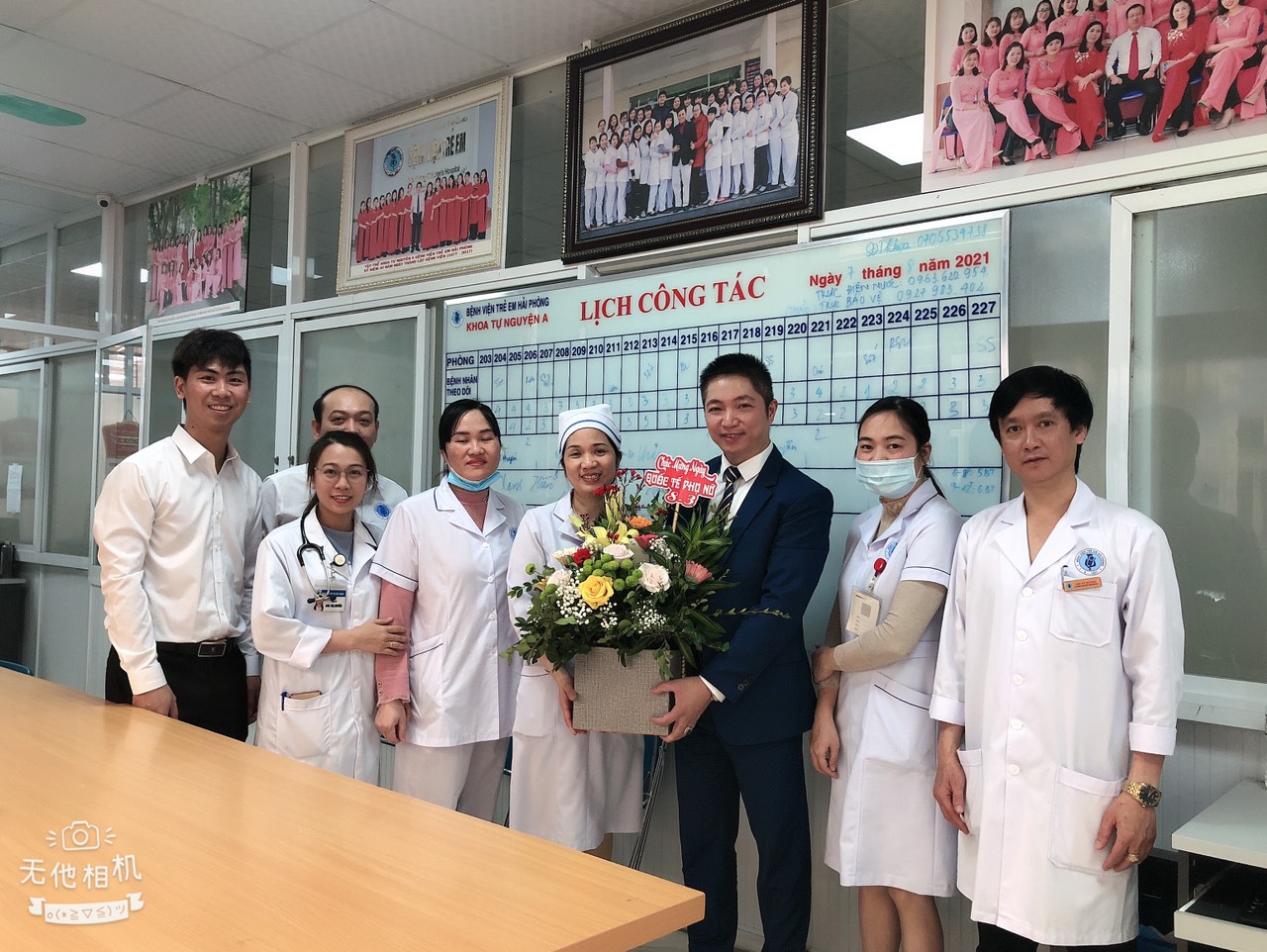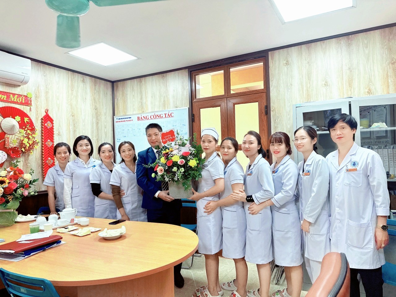 lẵng hoa tươi thắm đến từng khoa, phòng để chúc mừng các chị em, nhằm đảm bảo