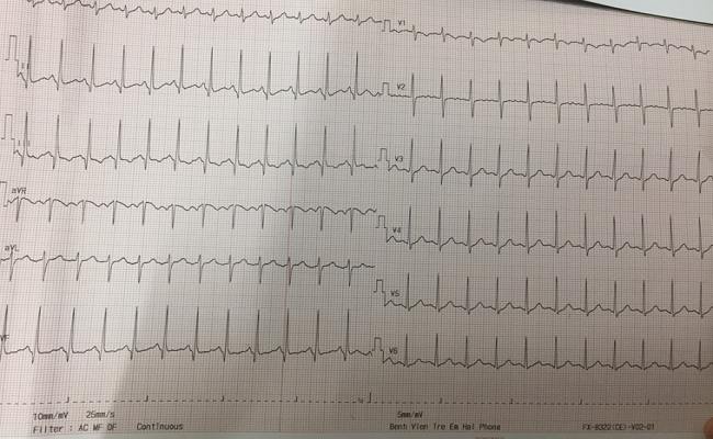 Ngày 4/3/2021, Khoa Hồi sức cấp cứu - Bệnh viện Trẻ em Hải Phòng tiếp nhận 1 bé nam 45 tháng, vào viện trong tình trạng mệt mỏi, chóng mặt và tức ngực. Qua hỏi bệnh và thăm khám, cháu bé được làm xét nghiệm siêu âm tim và điện tâm đồ cấp. Kết quả ghi nhận, trên điện tâm đồ có hình ảnh tim Nhịp nhanh kịch phát trên thất với nhịp tim 210 – 220 chu kì/phút (nhịp bình thường ở tuổi bé là 75 – 117 chu kì/phút). Với nhịp tim nhanh như vậy, tim bé sẽ phải làm việc rất mệt mỏi, và nếu tình trạng này kéo dài có thể gây suy tim hoặc những biến chứng tim mạch nguy hiểm khác.