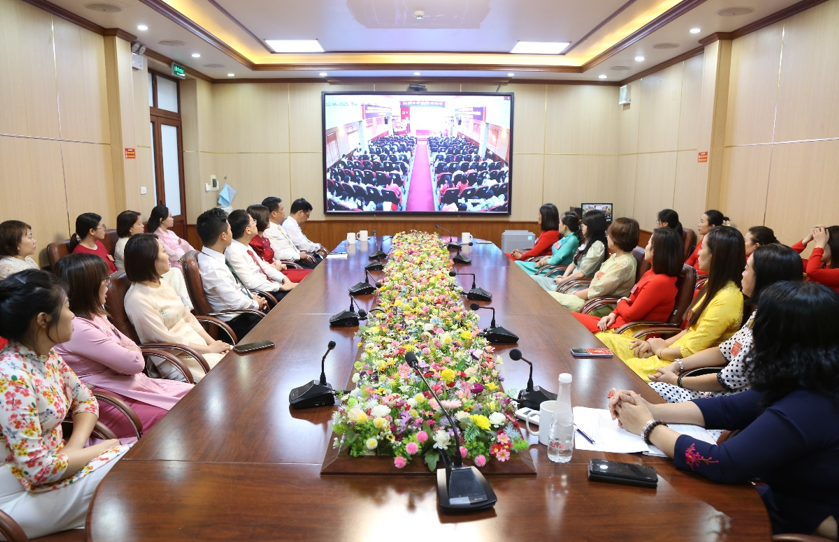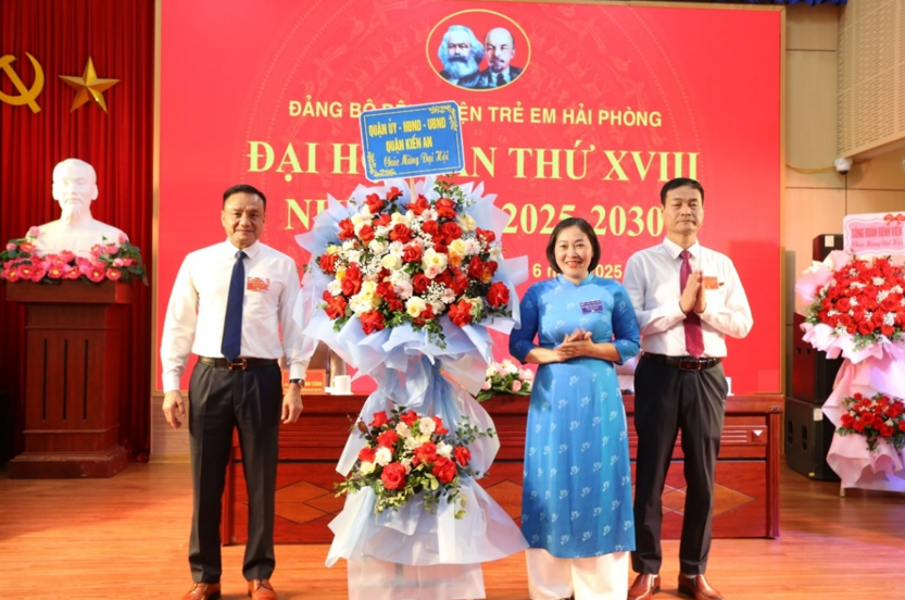 Thúy - Ủy viên Quận ủy, Chủ tịch Liên hiệp Phụ nữ quận Kiến An tặng hoa chúc mừng Đại hội Đảng bộ Bệnh viện