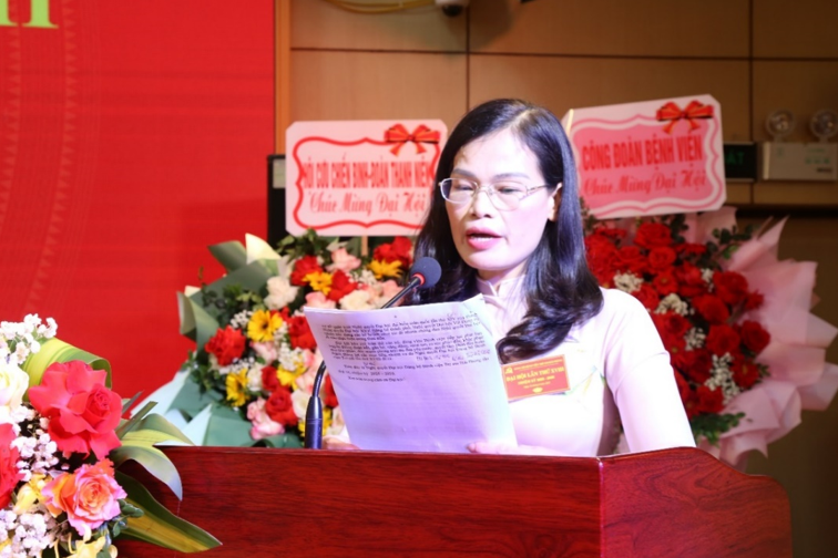 Minh Cảnh - Phó Bí thư Đảng ủy, Quyền Giám đốc Bệnh viện đọc báo cáo đại hội