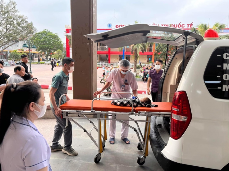 ảnh bệnh nhi được đưa lên xe trở về Hà Giang