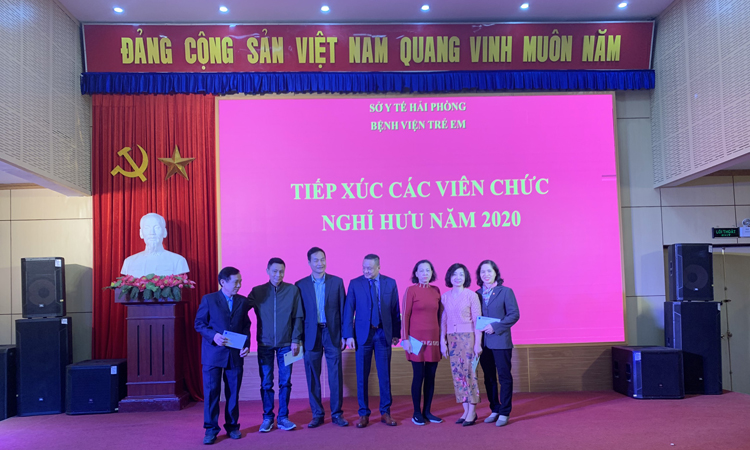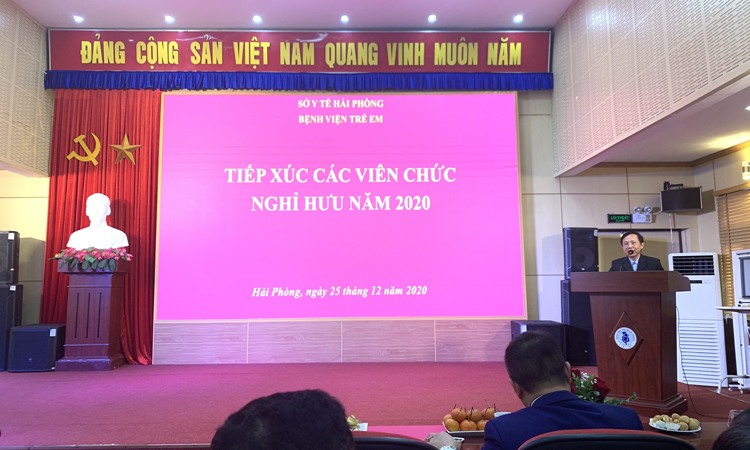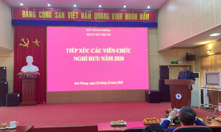 Sáng 25/12/2020, tại Hội trường bệnh viện, Bệnh viện Trẻ em Hải Phòng long trọng tổ chức Buổi tiếp xúc cán bộ viên chức bệnh viện nghỉ hưu năm 2020. Dự buổi tiếp xúc có các đồng chí trong Ban giám đốc, Ban chấp hành Đảng ủy, Ban chấp hành công đoàn bệnh viện, các đồng chí trưởng phòng chức năng, trưởng khoa, Điều dưỡng trưởng các khoa có viên chức nghỉ hưu và các đồng chí nghỉ hưu năm 2020.