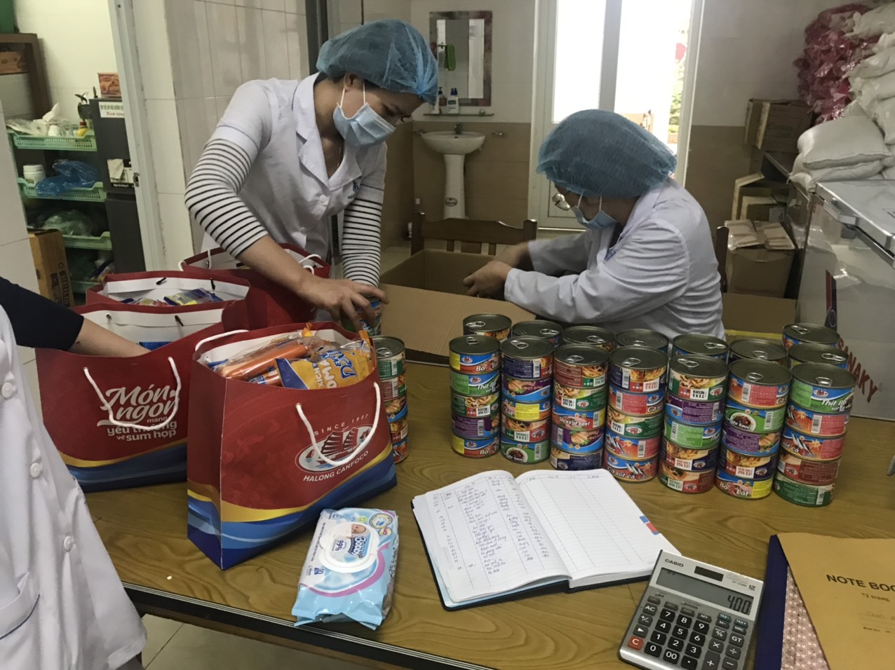 Công tác tiếp nhận hàng viện trợ của các tổ chức, cá nhân. Họp công tác tiếp nhận,kiểm đếm và phân phối nhu yếu phẩm cho người bệnh.