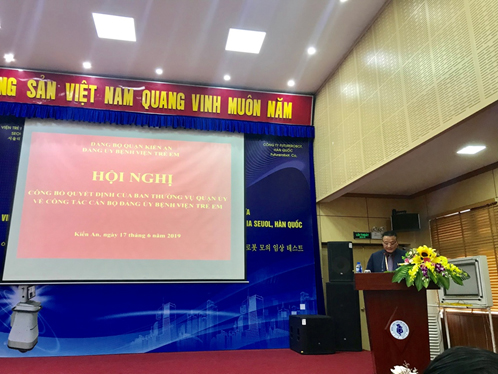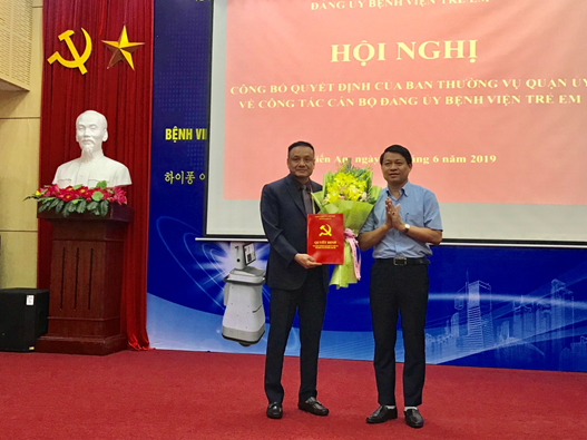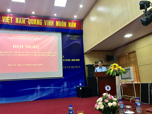 Thực hiện Quyết định số 522-QĐ/QU ngày 13/6/2019 của Quận ủy Kiến An về việc chuẩn y Ủy viên Ban Thường vụ Đảng ủy và giữ chức vụ Phó Bí thư Đảng ủy Bệnh viện Trẻ em Hải Phòng, nhiệm kỳ 2015 – 2020.