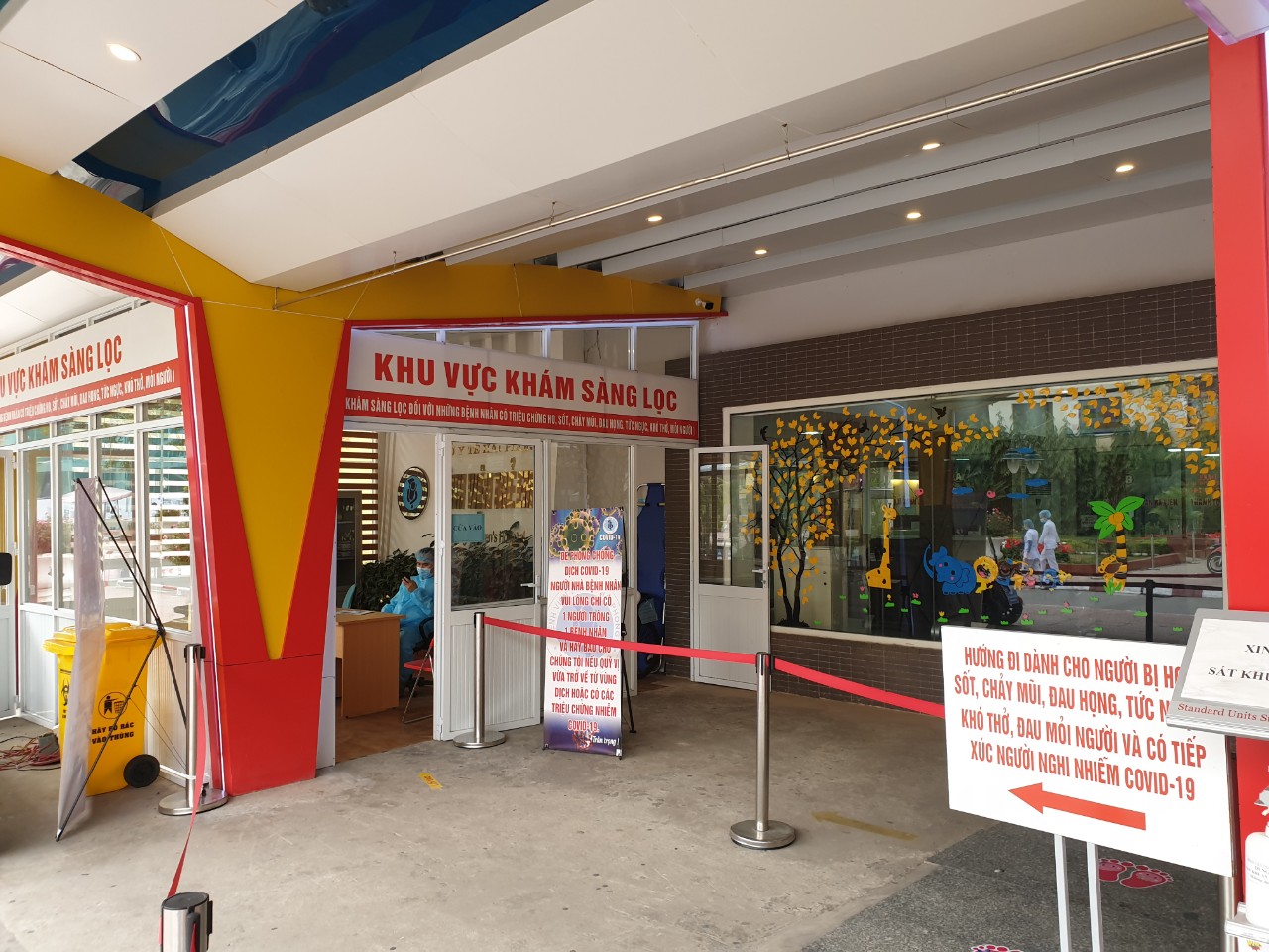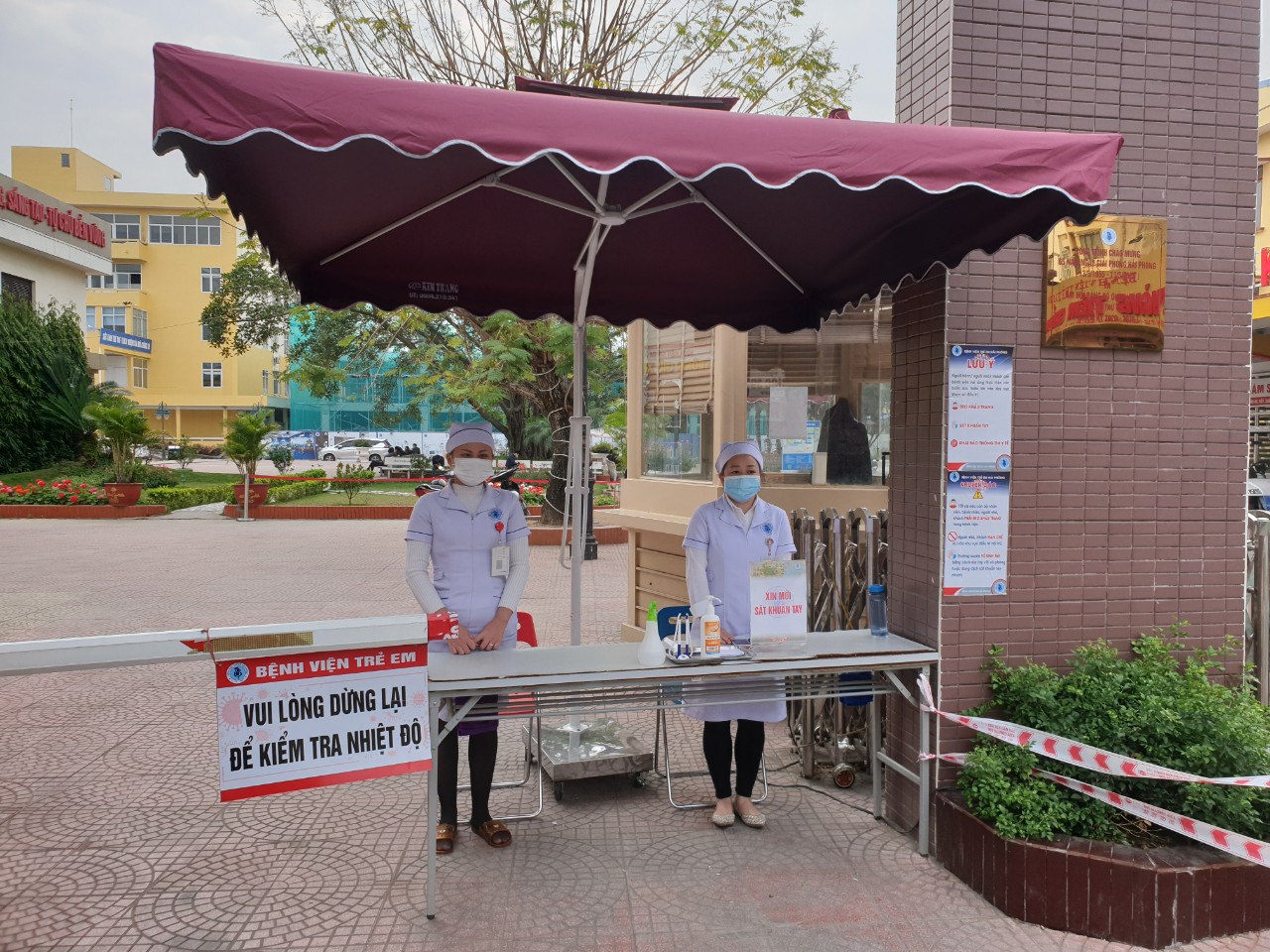 - Từ cổng vào, chúng tôi đã bố trí bảo vệ, nhân viên an ninh, nhân viên y tế hướng dẫn thân nhân, bệnh nhi thực hiện đúng khuyến cáo 5K của Bộ y tế "KHẨU TRANG", "KHỬ KHUẨN", "KHOẢNG CÁCH", "KHÔNG TỤ TẬP", "KHAI BÁO Y TẾ". Phun hóa chất khử trùng tất cả các loại phương tiện đi vào trong bệnh viện.