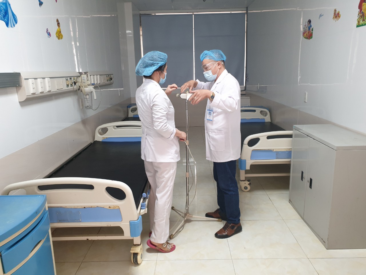 - Ngoài việc phun hóa chất khử trùng toàn viện theo từng đợt thì việc dùng tia cực tím tiêu diệt các vi khuẩn cũng được bệnh viện thường xuyên triển khai xuống từng phòng bệnh của các khoa.