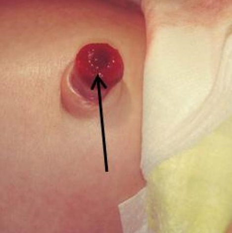 đẻ, khi rửa rốn được phát hiện có một khối u nhỏ màu hồng nằm chính giữa rốn