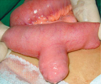 Bệnh lí túi thừa Meckel (Hình 4) thường biểu hiện