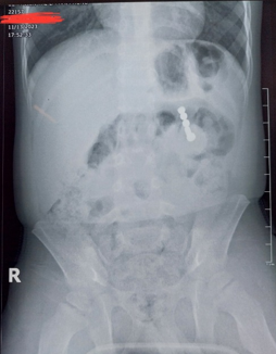 dị vật cản quang có thể là chuỗi bi nam châm và do tính chất đặc biệt nguy hiểm