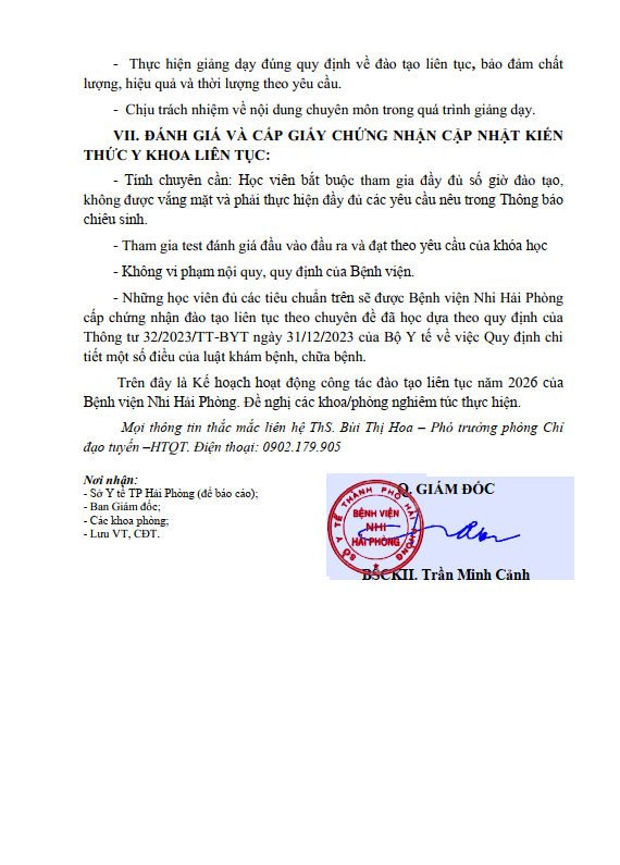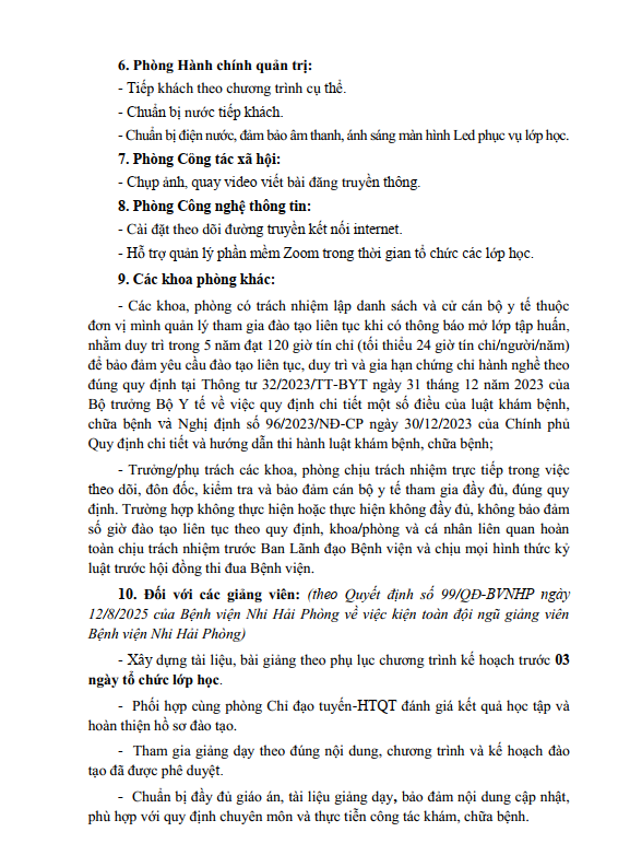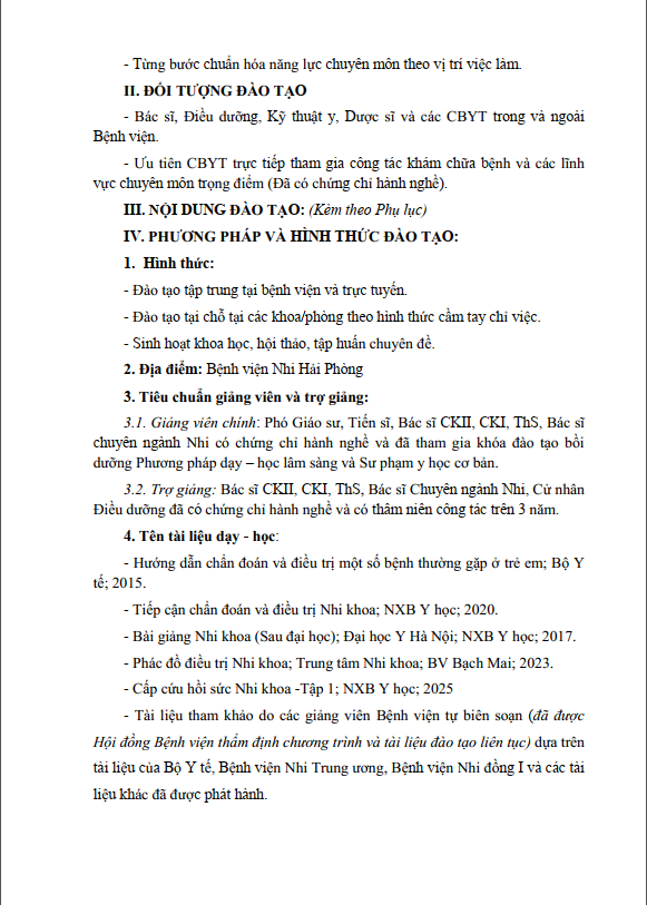 Kế hoạch Công tác đào tạo liên tục cho cán bộ y tế tại Bệnh viện Nhi Hải Phòng năm 2026