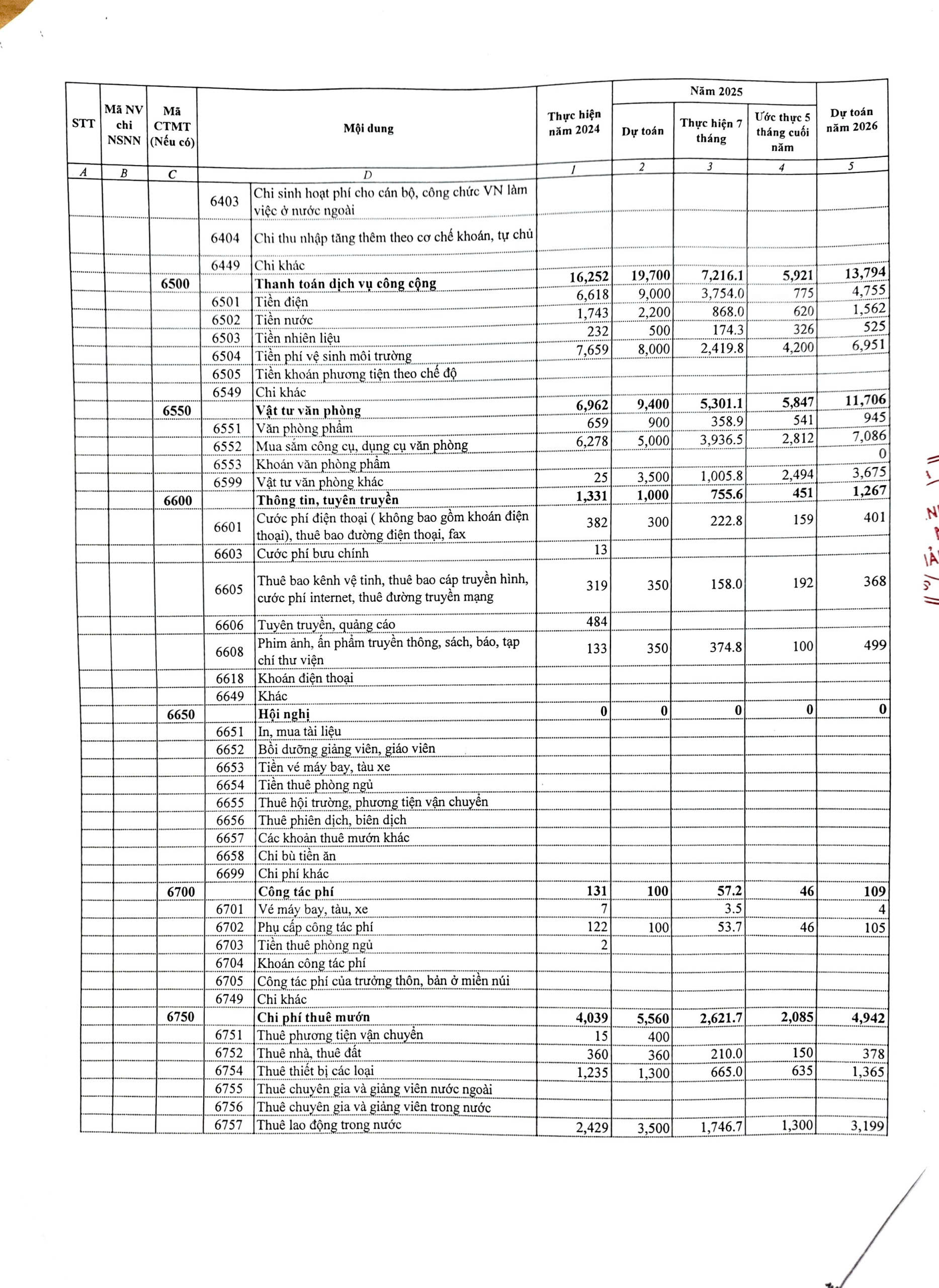 Quyết định Về việc công bố công khai Dự toán kinh phí năm 2026
