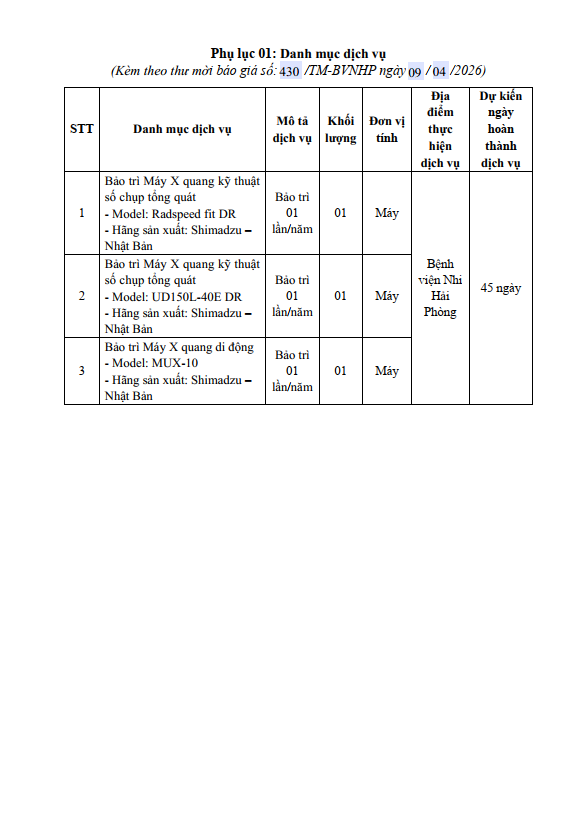 Thư mời báo giá số 156