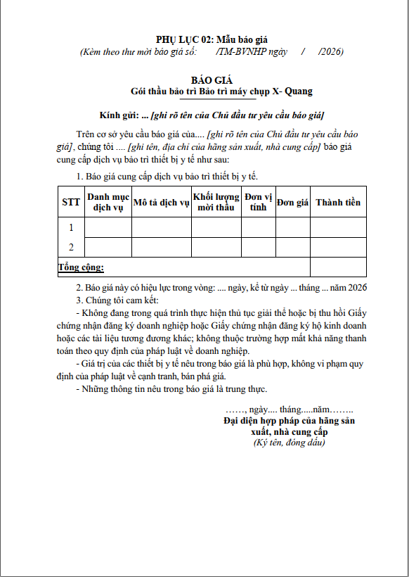 Thư mời báo giá số 38