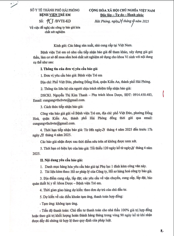 Thư mời báo giá thuê phần mềm quản lý xét nghiệm số 443