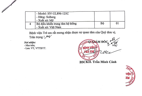 Danh mục giá Dịch vụ kỹ thuật áp dụng tại Bệnh viên Trẻ em