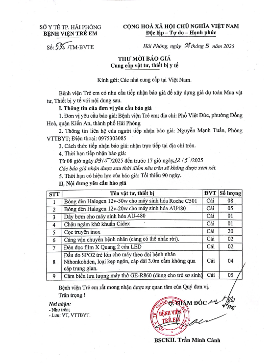 Thư mời báo giá số 535