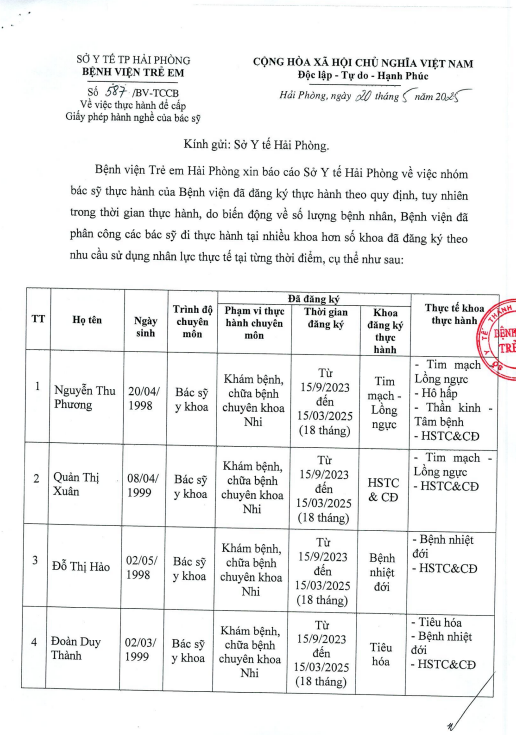 Quyết định về việc kiện toàn đội ngũ Giảng viên Bệnh viện Nhi Hải Phòng