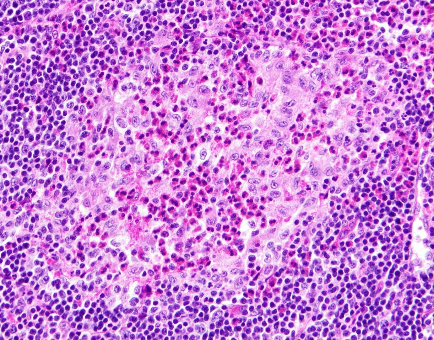mô bệnh học cho thấy bệnh xâm nhập vào hạch