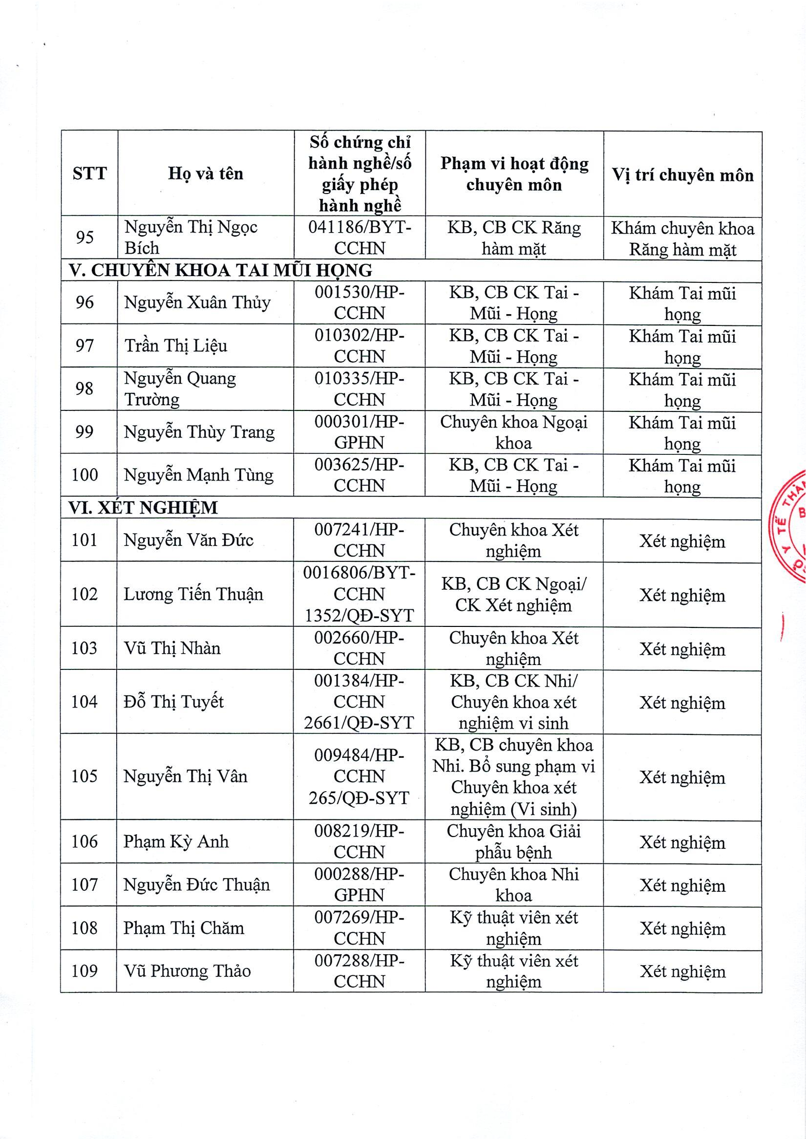 Danh sách nhân sự và thiết bị y tế để thực hiện khám sức khỏe