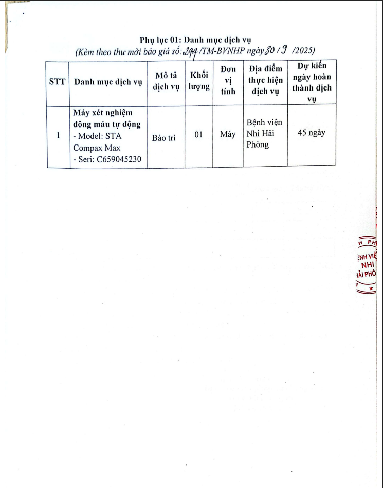 Danh mục giá Dịch vụ kỹ thuật áp dụng tại Bệnh viên Trẻ em
